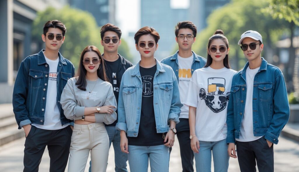 - Aksesori: Sneakers, tas selempang, dan perhiasan minimalis.